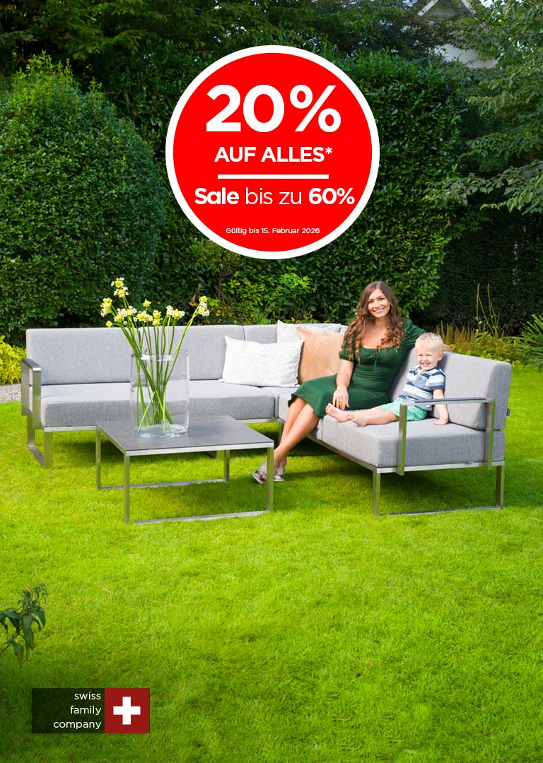 Im Innenbereich setzen wir Wert auf Komfort, Stil und Qualität. Klar dass, wenn Garten, Balkon oder Terrasse im Frühling und Sommer zum zweiten Wohnzimmer werden, für diese dieselben Ansprüche gelten. Die Gartenmöbel sollen unserem Geschmack entsprechen und den Stil unseres Kleinods unterstreichen. Nur so können Sie sich gänzlich wohlfühlen und entspannte Stunden geniessen. Ob Tisch, Stuhl oder Lounge, alle Möbel, die Ihr Wohnbereich drinnen gemütlich machen, finden Sie bei uns auch für draussen. Die Stil und Materialvielfalt der Gartenmöbel ist dabei schier endlos: