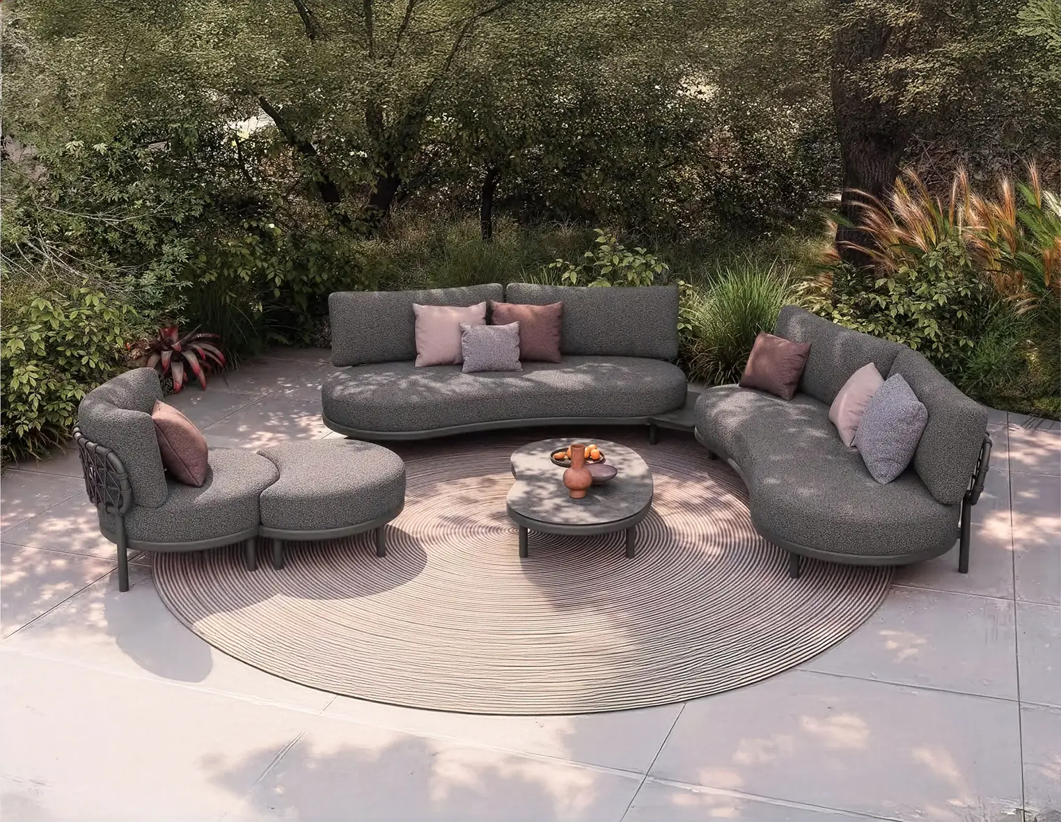 Wer es puristisch und zeitgemäss mag, wird den modernen Gartenstil lieben. Hier dominieren klare Linien, neutrale Farben wie Grau, Weiss oder Anthrazit sowie Materialien wie Aluminium oder Edelstahl. Die Möbel wirken zurückhaltend, aber elegant – oft sind sie bewusst minimalistisch gestaltet, um mit der Umgebung zu verschmelzen.